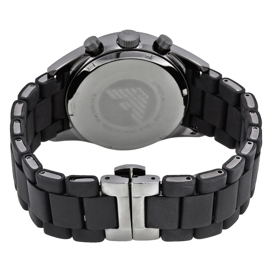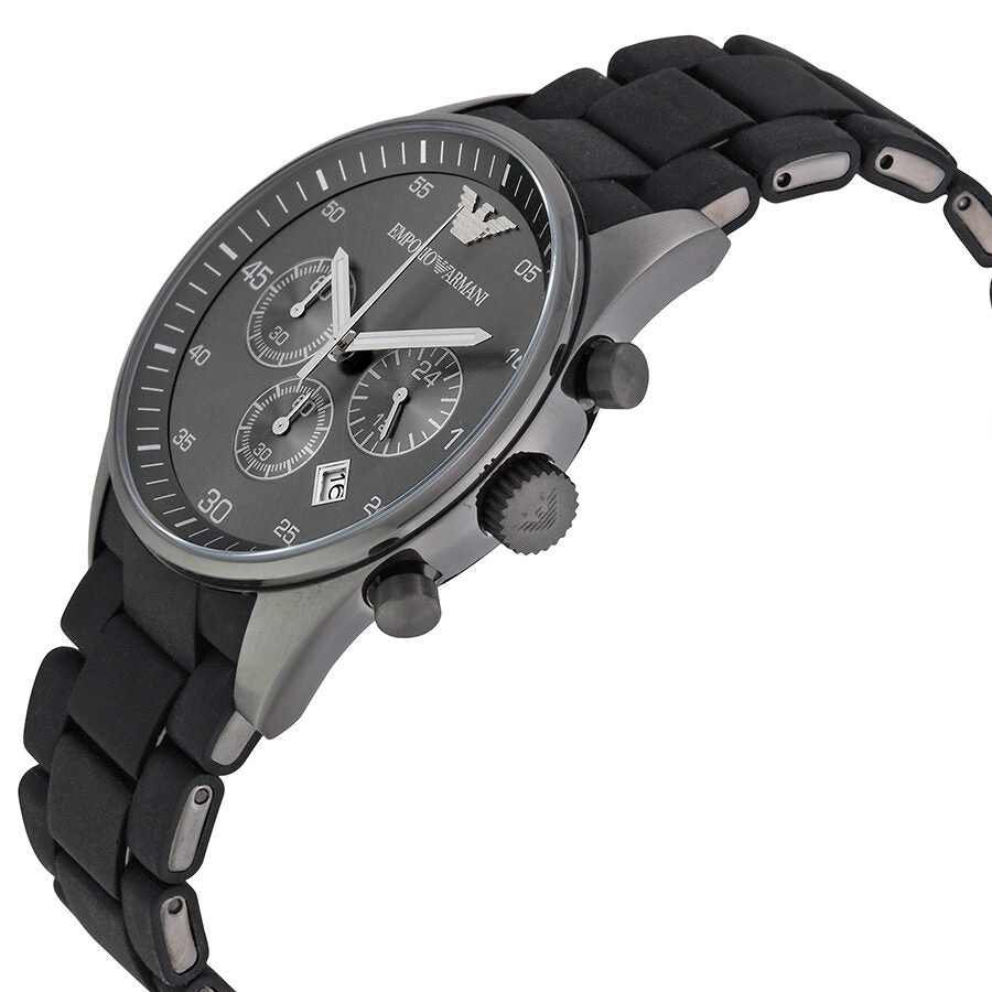 علبة من الفولاذ المقاوم للصدأ مع سوار من الفولاذ المقاوم للصدأ مغلف بالبولي يوريثان الأسود. إطار ثابت من الفولاذ المقاوم للصدأ. مينا أسود مع عقارب ومؤشرات ساعات سوداء مضيئة. مؤشرات دقائق بأرقام عربية (كل 5 دقائق). مؤشرات دقائق حول الحافة الخارجية. يظهر شعار إمبوريو أرماني عند موضع الساعة 12. نوع المينا: تناظري. عقارب ومؤشرات مضيئة. عرض التاريخ بين موضع الساعة 4 و5. كرونوغراف - ثلاثة موانئ فرعية تعرض: 60 ثانية، 60 دقيقة، و24 ساعة. حركة كوارتز. زجاج معدني مقاوم للخدش. تاج لولبي. غطاء خلفي صلب. قطر العلبة: 43 مم. سمك العلبة: 12 مم. شكل العلبة: دائري. عرض السوار: 21 مم. مشبك قابل للطي. مقاومة للماء حتى عمق 50 مترًا / 165 قدمًا. الوظائف: كرونوغراف، تاريخ، ساعة، دقيقة، ثانية. تصميم ساعة كاجوال. ساعة إمبوريو أرماني سبورت كرونوغراف للرجال بمينا أسود AR5889.