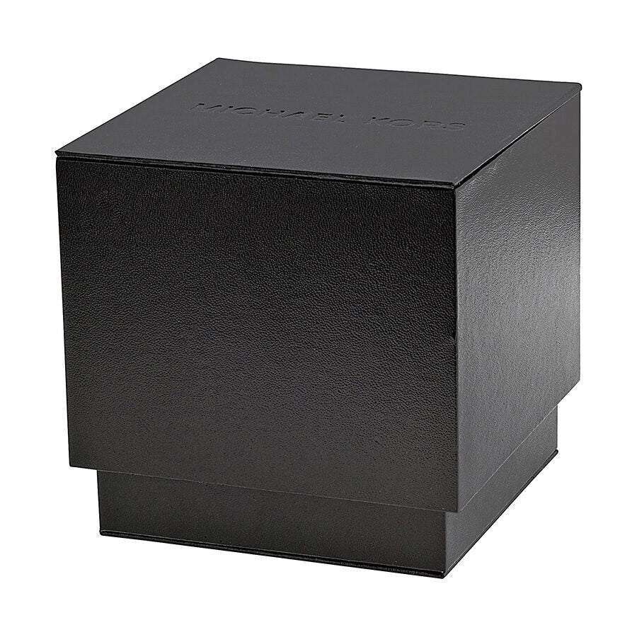 علبة من الفولاذ المقاوم للصدأ بلون ذهبي، وسوار من الفولاذ المقاوم للصدأ بلون ذهبي مع وصلات مركزية من أسيتات بنقشة صدفة السلحفاة. إطار ثابت بلون ذهبي. مينا بنقشة صدفة السلحفاة مع عقارب ومؤشرات ساعات ذهبية اللون. نوع المينا: تناظري. حركة كوارتز. زجاج معدني مقاوم للخدش. تاج سحب/دفع. غطاء خلفي صلب. قطر العلبة: 42 مم. سمك العلبة: 8 مم. شكل العلبة: دائري. عرض السوار: 20 مم. مشبك مجوهرات. مقاومة للماء حتى عمق 50 مترًا/165 قدمًا. الوظائف: الساعات، الدقائق، الثواني. تصميم ساعة كاجوال. ساعة مايكل كورس سليم رانوي النسائية MK4284، بمينا بنقشة صدفة السلحفاة، وسوار من أسيتات بلون ذهبي ونقشة صدفة السلحفاة.