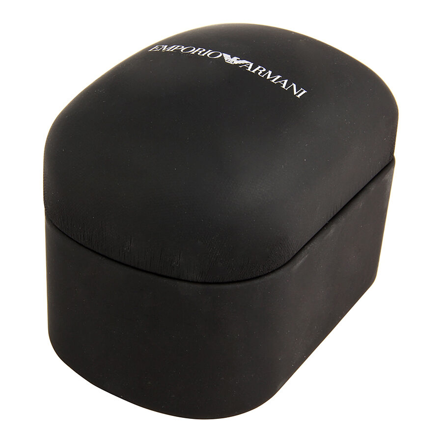 علامات الثواني: تشير الأرقام الرومانية إلى مواضع الساعة 3 و6 و9. شعار إمبوريو أرماني عند موضع الساعة 12