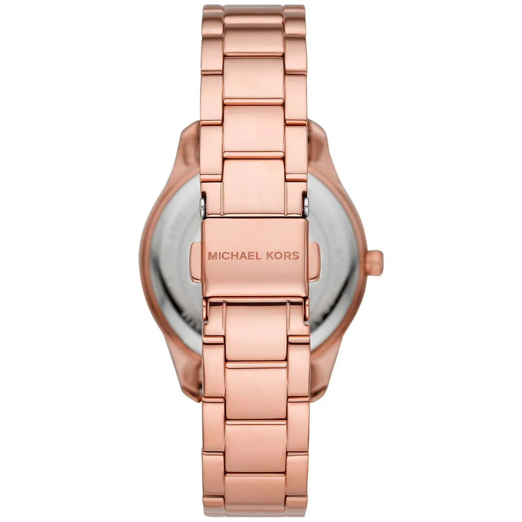 ساعة مايكل كورس لايتون بثلاث عقارب، مينا أحمر، سوار من الفولاذ المطلي بالذهب الوردي، للنساء - mk6893