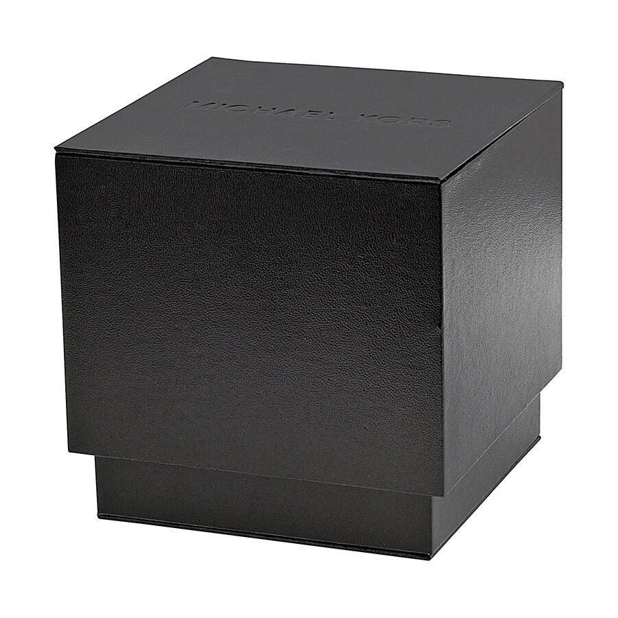 علبة وسوار من الفولاذ المقاوم للصدأ. إطار ثابت من الفولاذ المقاوم للصدأ مرصع بالكريستال. مينا فضي مع عقارب فضية مضيئة وعلامات ساعات متناوبة بين العصي والأرقام العربية. علامات دقائق حول الحافة الخارجية. عقارب وعلامات مينا مضيئة. عرض التاريخ عند موضع الساعة 6. كرونوغراف - ثلاثة عدادات فرعية لعرض: 60 ثانية، 60 دقيقة، و24 ساعة. حركة كوارتز. زجاج معدني مقاوم للخدش. غطاء خلفي من الفولاذ المقاوم للصدأ. قطر العلبة: 39 مم. سمك العلبة: 11.5 مم. مشبك بزر ضغط. مقاومة للماء حتى عمق 100 متر / 330 قدم. الوظائف: الساعات، الدقائق، الثواني، التاريخ، الكرونوغراف. ساعة مايكل كورس كرونوغراف نسائية بكريستال أبيض MK5165