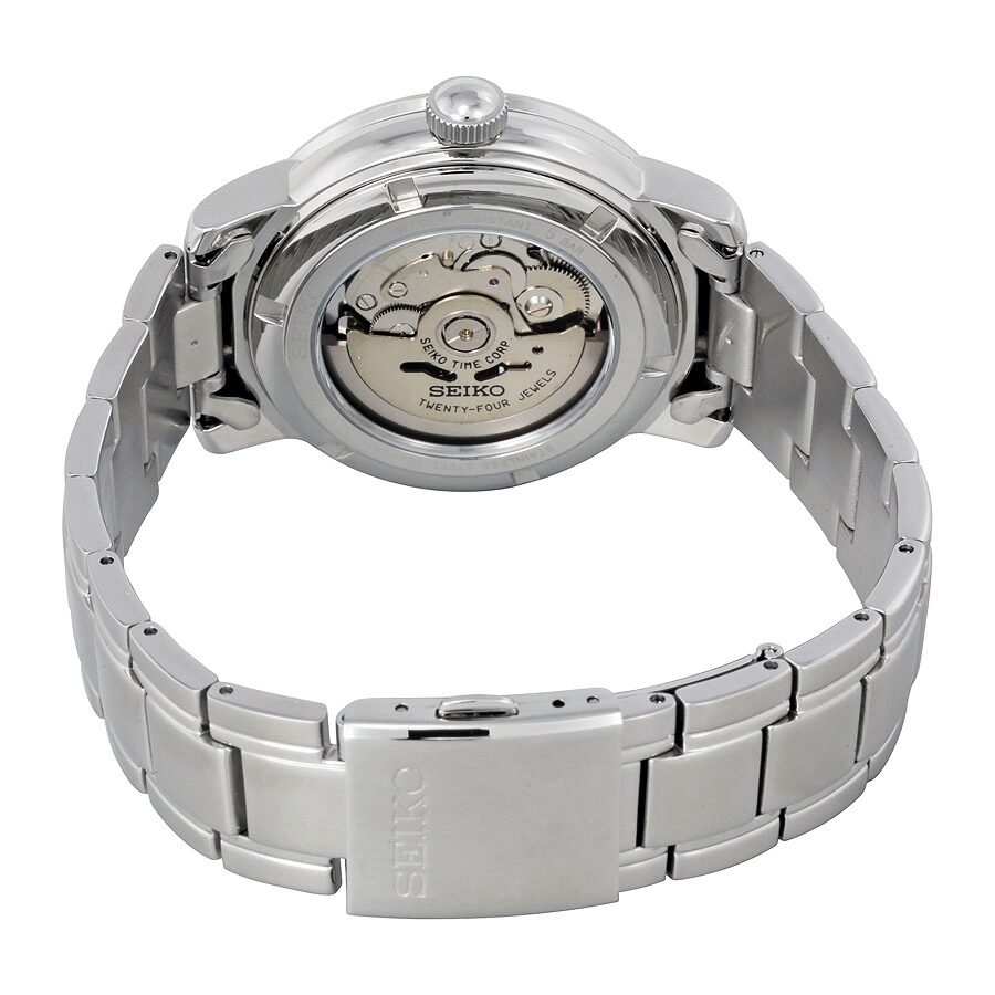 Caja de acero inoxidable con un brazalete de acero inoxidable. Bisel fijo de acero inoxidable. Esfera blanca con manecillas plateadas luminosas y marcadores de índice de hora. Marcadores de minutos alrededor del borde exterior. Tipo de esfera: analógica. Manos luminiscentes. Visualización de la fecha en la posición de las 3 en punto. Movimiento de cuarzo Seiko calibre 7N42. Cristal de zafiro resistente a los arañazos. Tirar/empujar la corona. Fondo de caja transparente. Forma de caja redonda. Tamaño de la caja: 41 mm. Grosor de la caja: 11 mm. Ancho de banda: 20 mm. Cierre plegable con botón de liberación. Resistente al agua a 100 metros / 330 pies. Funciones: fecha, hora, minuto, segundo. Serie Neo Clásica. Estilo de reloj informal. Etiqueta del reloj: Japan Movt. Reloj Seiko Neo Classic para hombre de acero inoxidable con esfera blanca SGEH39.