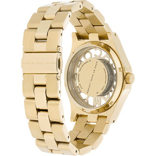 Marc Jacobs Henry Gold Women's Mbm3263 Gold Analog Watch MBM3263 has a 40mm gold plated case and a 20mm gold plated strap.