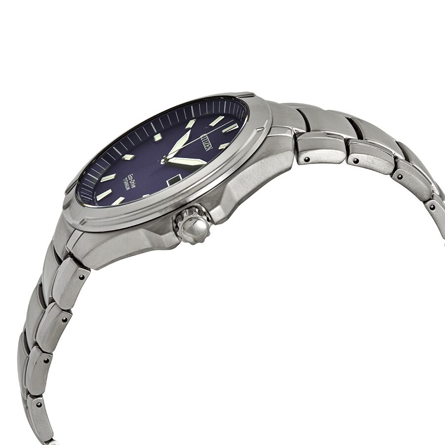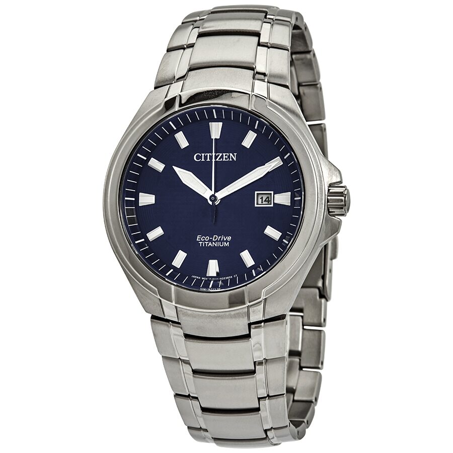 Super titanium case with a super titanium bracelet. Fixed super titanium bezel. Blue dial with luminous silver-tone hands and index hour markers. Minute markers around the outer rim. Dial Type: Analog. Luminescent hands and markers. Date display at the 3 o'clock position. Citizen caliber Eco-Drive E111 eco-drive movement. Scratch resistant sapphire crystal. Solid case back. Round case shape. Case size: 43 mm. Case thickness: 10 mm. Band width: 25 mm. Fold over clasp with a push button release. Water resistant at 100 meters / 330 feet. Functions: date, hour, minute, second, solar-powered. Additional Info: in general, suitable for swimming and snorkeling, but not diving. Casual watch style. Watch label: Japan Movt. Citizen Paradigm Super Titanium Eco-Drive Blue Dial Men's Watch BM7431-51L.