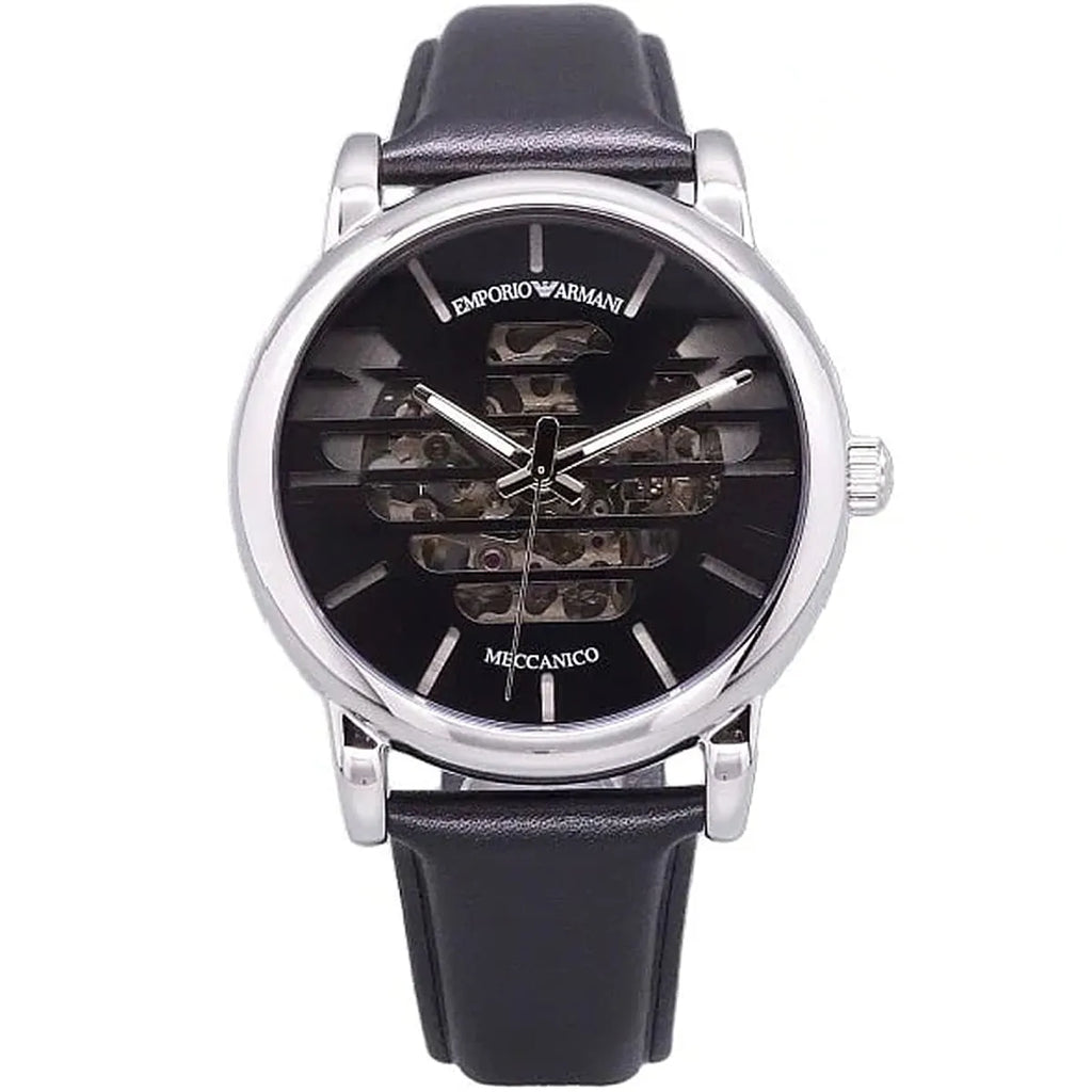 meccanico black leather strap black dial automatic watch luigi ar60040