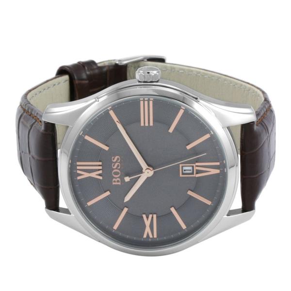 Hugo Boss Ambassador Grey Dial Leather Strap Men's Watch 1513041 es un reloj funcional y muy impresionante para caballeros. El material de la caja es acero inoxidable, lo que representa una alta calidad del artículo y la esfera gris le da al reloj un aspecto único. Las características del reloj incluyen (entre otras) una función de fecha. En cuanto a la resistencia al agua, el reloj tiene una resistencia de hasta 30 metros. Significa que se puede usar en escenarios donde es probable que se salpique pero no se sumerja en agua. Se puede usar mientras se lava las manos y estará bien bajo la lluvia.
